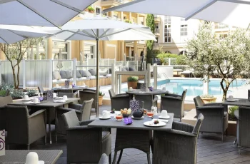 Minutes from the Cours Mirabeau and Aix’s historic center, the Grand Hôtel Roi René is your ideal village home. Amenities include La Table du Roi restaurant, featuring elegant Provencal cuisine, L’Interporel bar serving creative drinks, a courtyard with outdoor pool, and a fitness center.